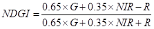 式中,NIR、R、G分别表示为近红外、红光、和绿光波段反射率。