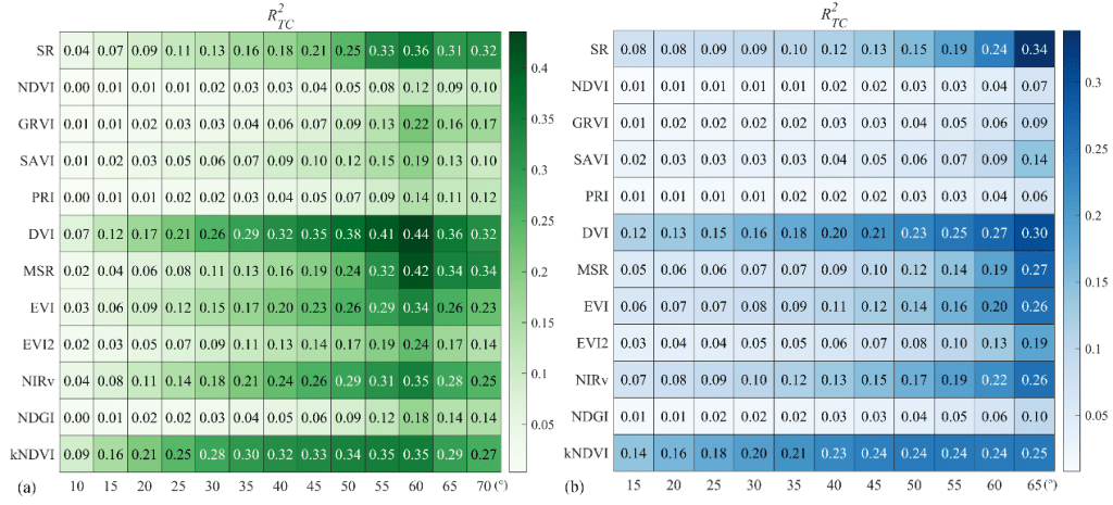 植被指数是反射率的简单数学转换,旨在增强对植被特性的监测。在现有的VI中,归一化植被指数NDVI是应用最广泛的。然而,大气条件、土壤背景和饱和效应等因素会强烈影响其值,进而限制其应用。在山区,VI也会受到崎岖地形的显著影响。之前的研究发现NDVI对地形影响轻微敏感,而SAVI、EVI和NIRv受地形影响较大。然而,这些研究都是针对特定光学遥感影像进行的,不同地形配置对VI的影响尚未得到系统评估。此外,地形对最近开发的新型VI(如归一化差异绿度指数NDGI和核归一化差异植被指数)的影响仍不清楚。