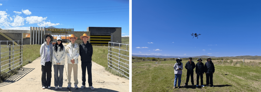 2025年8月29日至9月1日,9月21日至24日,课题组联合四川省草原科学研究院,赴阿坝州红原县开展野外科学考察。此次考察围绕瓦切藏绵羊原种场试验草地,采用无人机航测与地面实测相结合的方式,在4块样地(总面积150亩)上顺利完成高光谱数据采集,获取了不同放牧强度下的植被生态信息。所获数据将用于构建草地地上生物量遥感反演模型,支持高寒牧区草地资源动态监测和放牧利用强度评估,为实现草畜营养平衡管理、提高牧草利用效率及推动草地可持续利用提供技术参考。